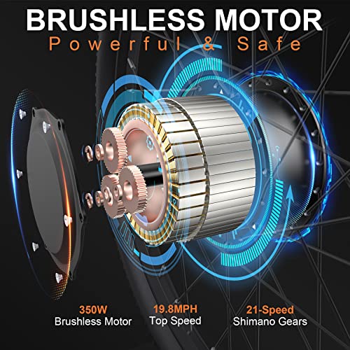 TotGuard Electric Bike, Bike for Adults, 26" Ebike 350W Adult Bicycles, 19.8MPH Mountain 36V 10.4Ah Battery, Suspension Fork, Shimano 21 Speed Gears
